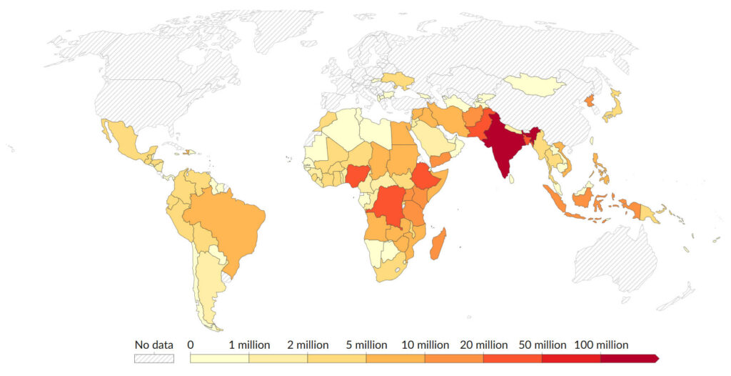 Figure 1. Number of undernourished people, 2022. Sourced from Food and Agriculture Organization of the United Nations (2025) – with major processing by Our World in Data.