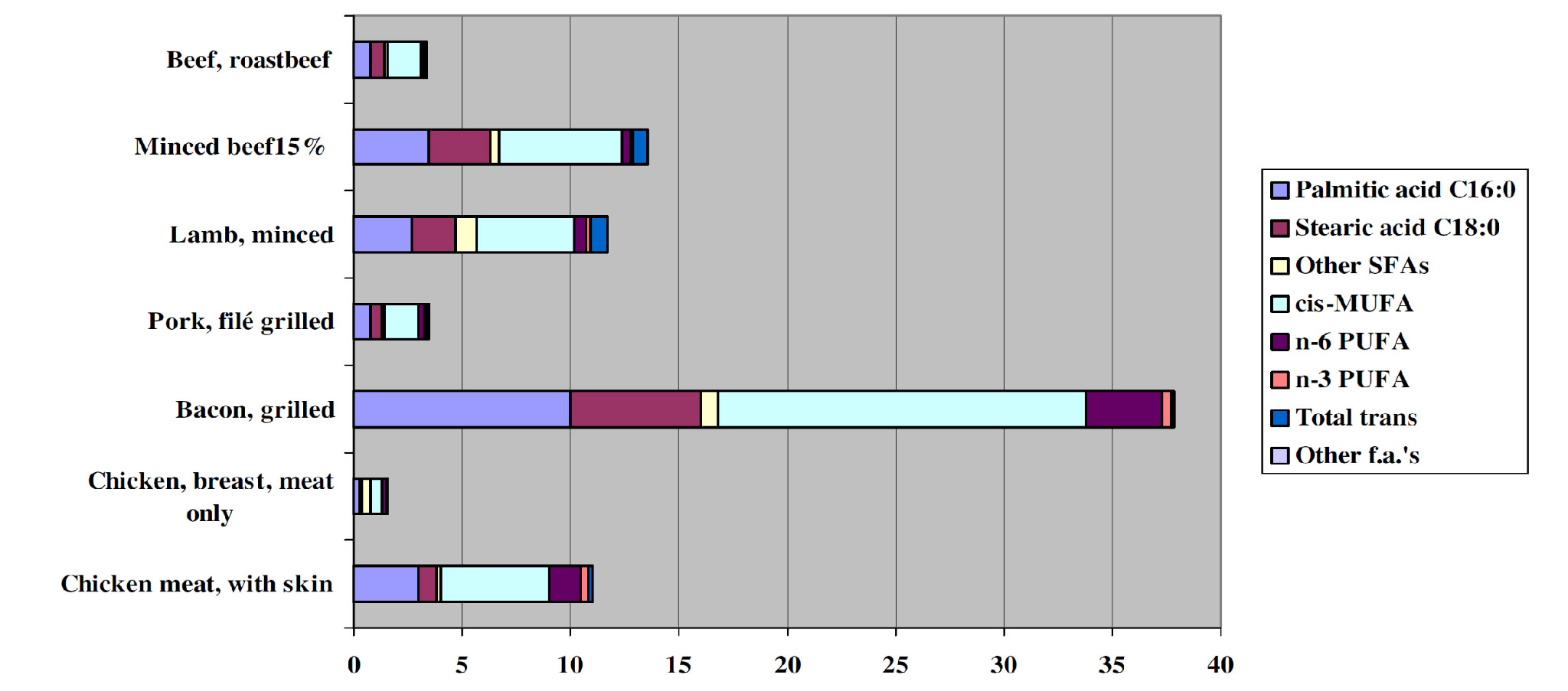 Figure 3. The fatty acid content in selected meats. Sourced from Valsta et al. 2005 with modifications.