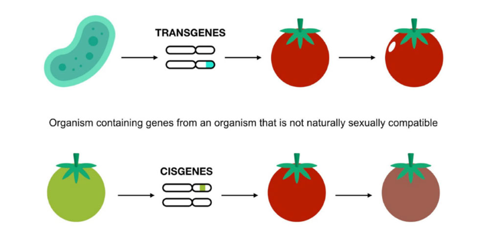 Figure 3. Contrast between transgenic and cisgenic modification techniques. Sourced from Rodriguez et al. 2013.