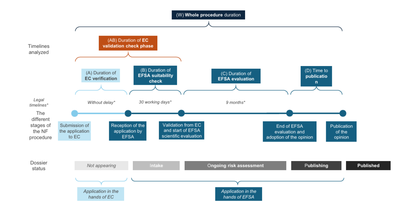 A recent analysis by Le Bloch (2025) offered the first comprehensive examination of processing timelines under Regulation (EU) 2015/2283, revealing procedural inefficiencies and administrative bottlenecks within the EU system (see whole procedure in Figure 1.). The process begins with the submission of a scientific dossier to the European Commission (EC). The Commission is responsible for verifying the validity of the application and may consult EFSA during this phase. EFSA then has 30 working days to provide an initial opinion on the validity of the submission, which is followed by the publication of a Scientific Opinion. Once the application is validated, the EC formally forwards it to EFSA, which then conducts the main risk assessment. EFSA’s role in this phase is to identify and characterize any potential hazards by comparing the novel food to similar products already on the market and assessing the associated risks under the proposed conditions of use. Although EFSA is expected to issue its opinion within nine months, this timeline is frequently extended due to requests for additional information from applicants. These delays have had a measurable impact on the overall process, with only 22 assessments completed in 2023, falling short of the targeted 42 evaluations. The final decision on whether to authorize a novel food does not rest with EFSA but with the political authorities. Based on EFSA’s scientific opinion, the Commission prepares a draft implementing act, which is then voted on by representatives of the Member States in the Standing Committee on Plants, Animals, Food and Feed (PAFF). Once approved, the product is added to the Union List of Authorized Novel Foods and can be marketed across the EU. Importantly, each authorization is product-specific and not generalizable across categories.